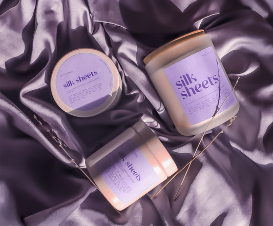 silk sheets wood wick candle